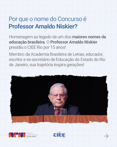 🎓 O concurso homenageia o legado do Professor Arnaldo Niskier, um dos maiores nomes da educação brasileira, e já revelou diversos talentos ao longo de suas 11 edições, realizadas na Academia Brasileira de Letras.